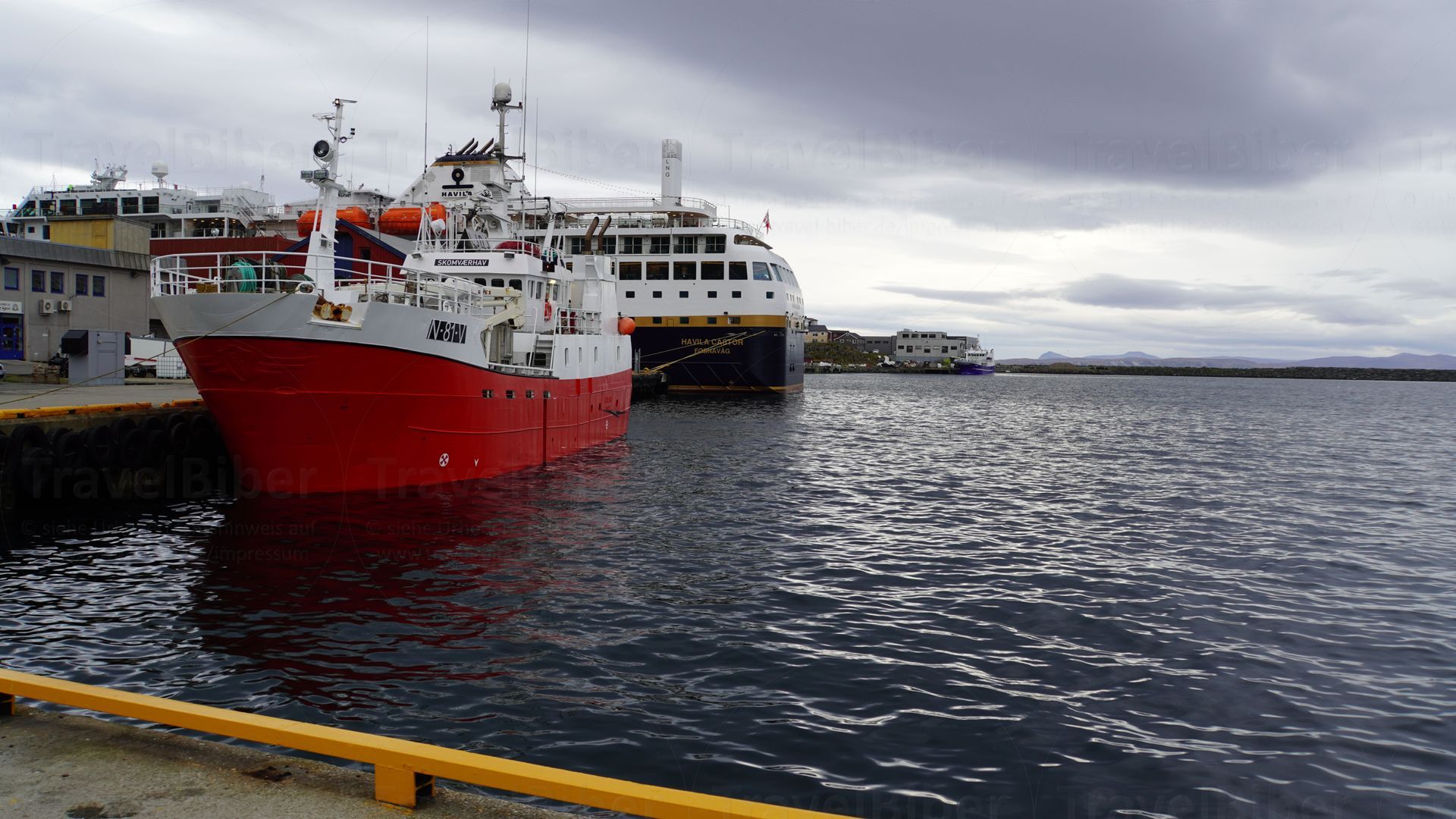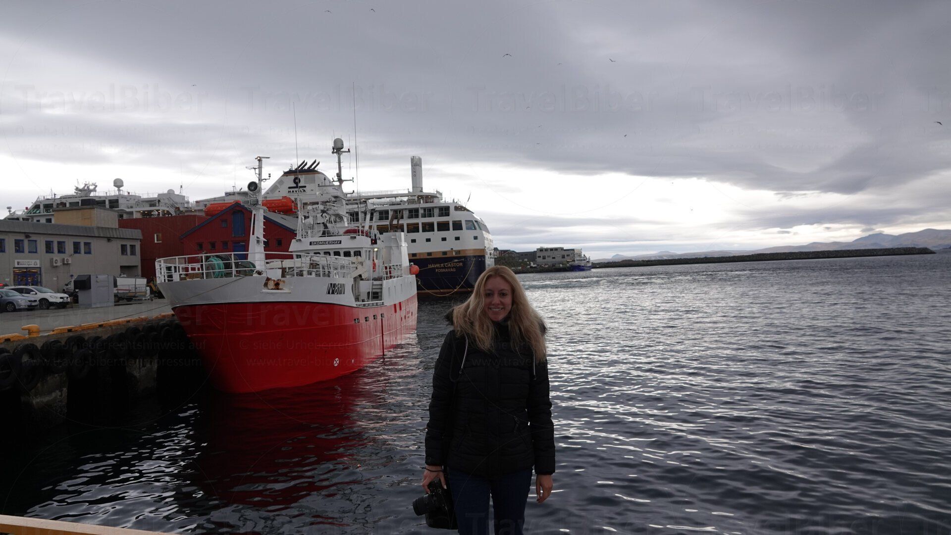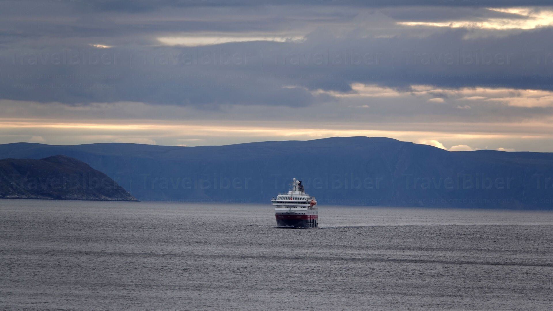 Øksfjord, frühmorgens an Hammerfest, dann später an Havøysund. Und schließlich am späten Vormittag hält das Postschiff in Honningsvåg, der Stadt auf der Insel Magerøya, von wo aus es mit einem Bus zum Nordkap geht.