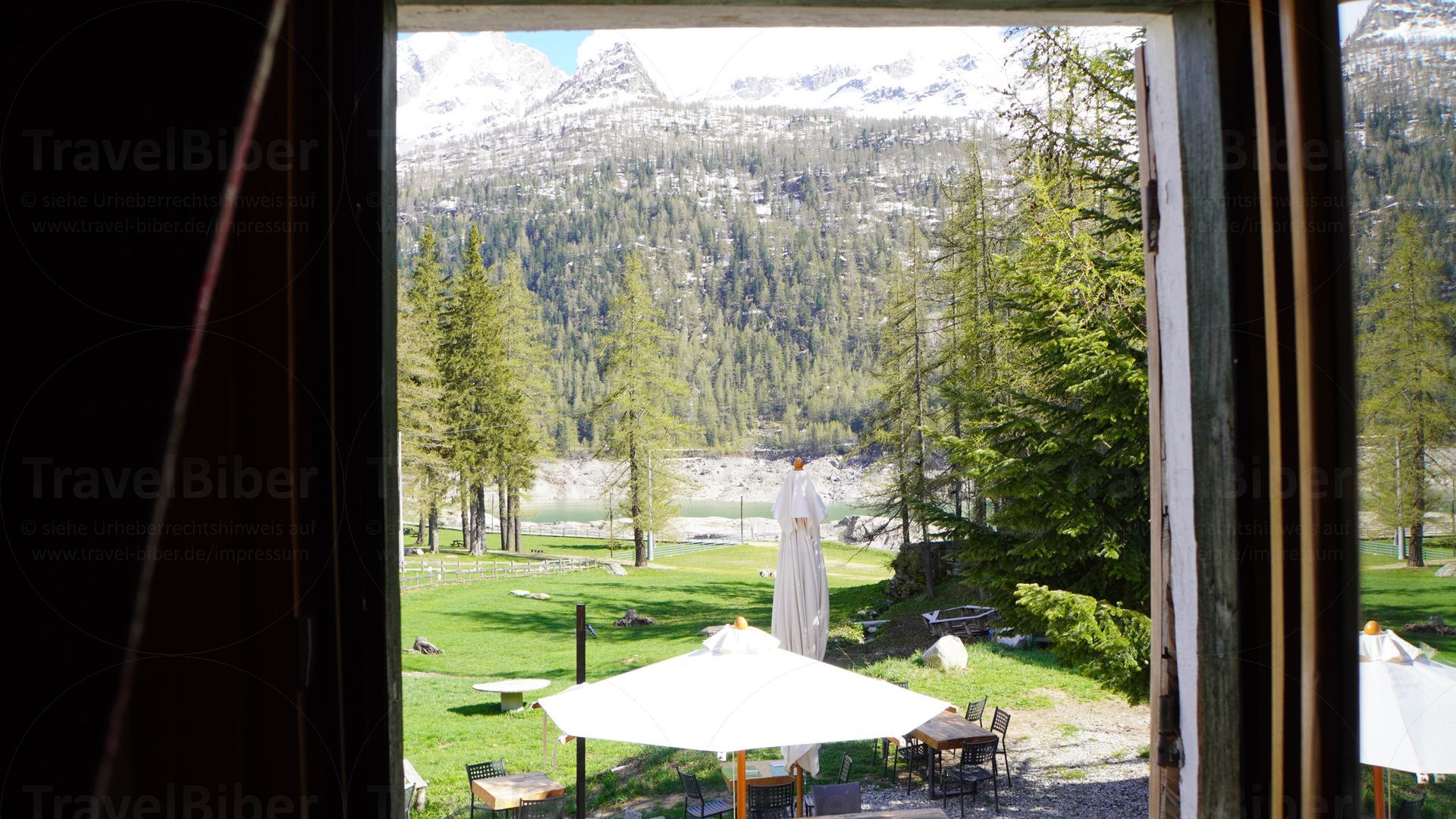 Blick aus dem Fenster einer absolut tollen Unterkunft in Ceresole Reale. Hinter der Wiese liegt der See Lago di Ceresole.