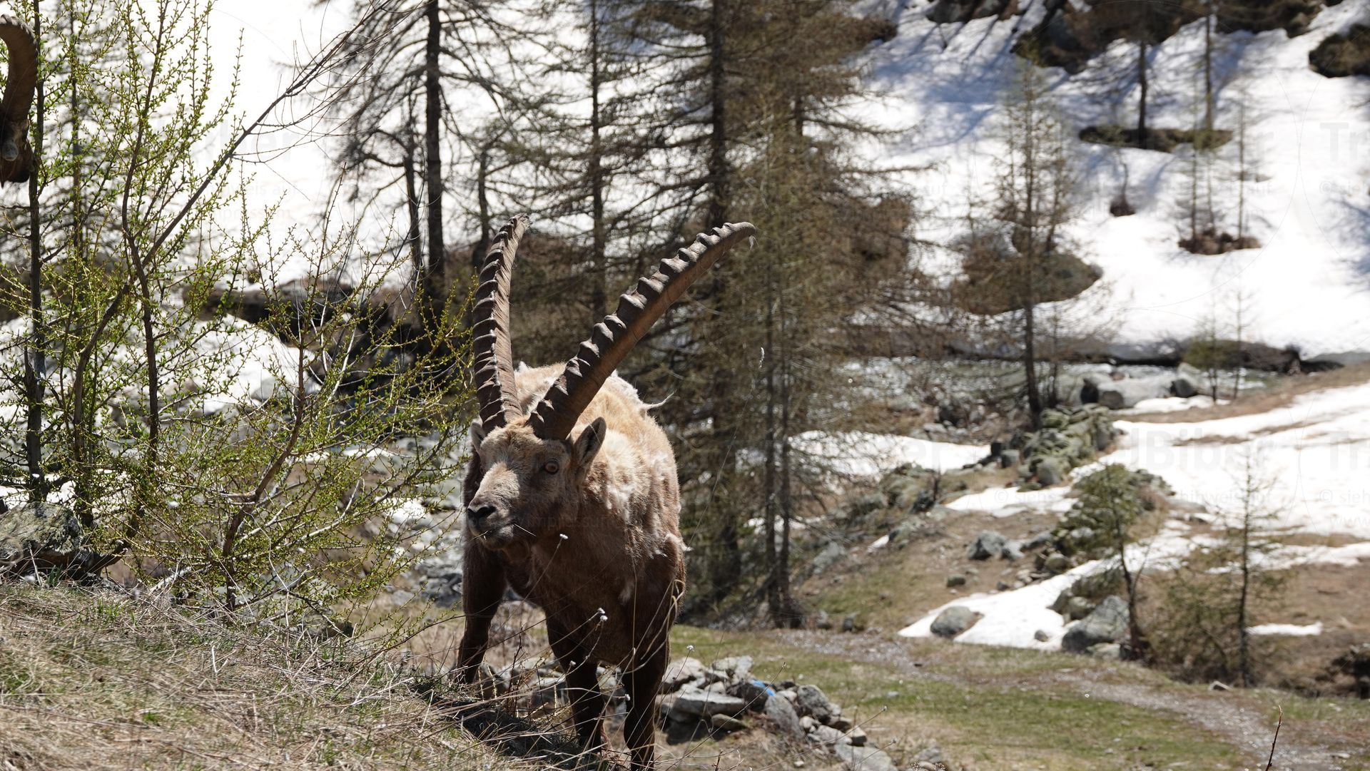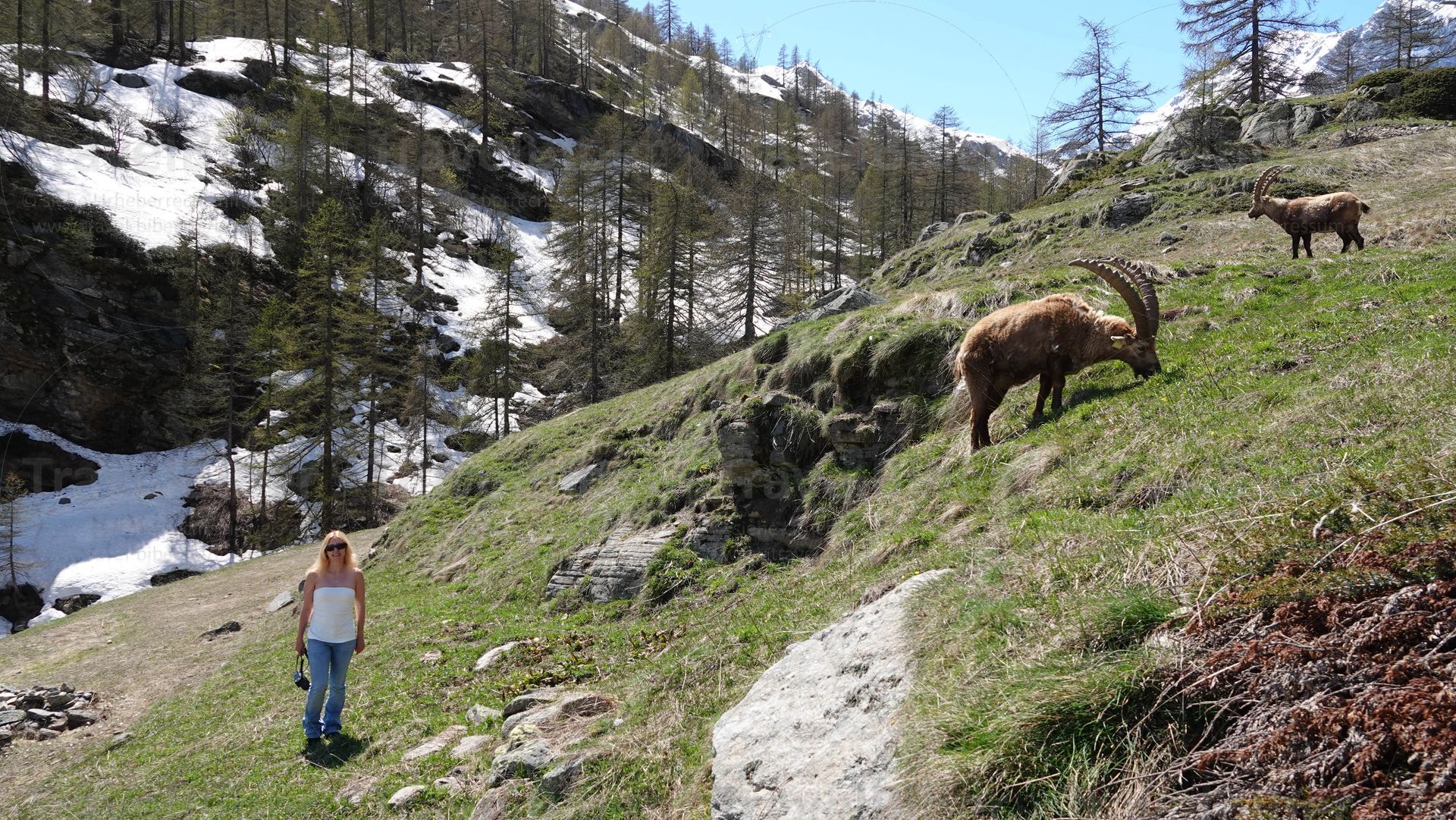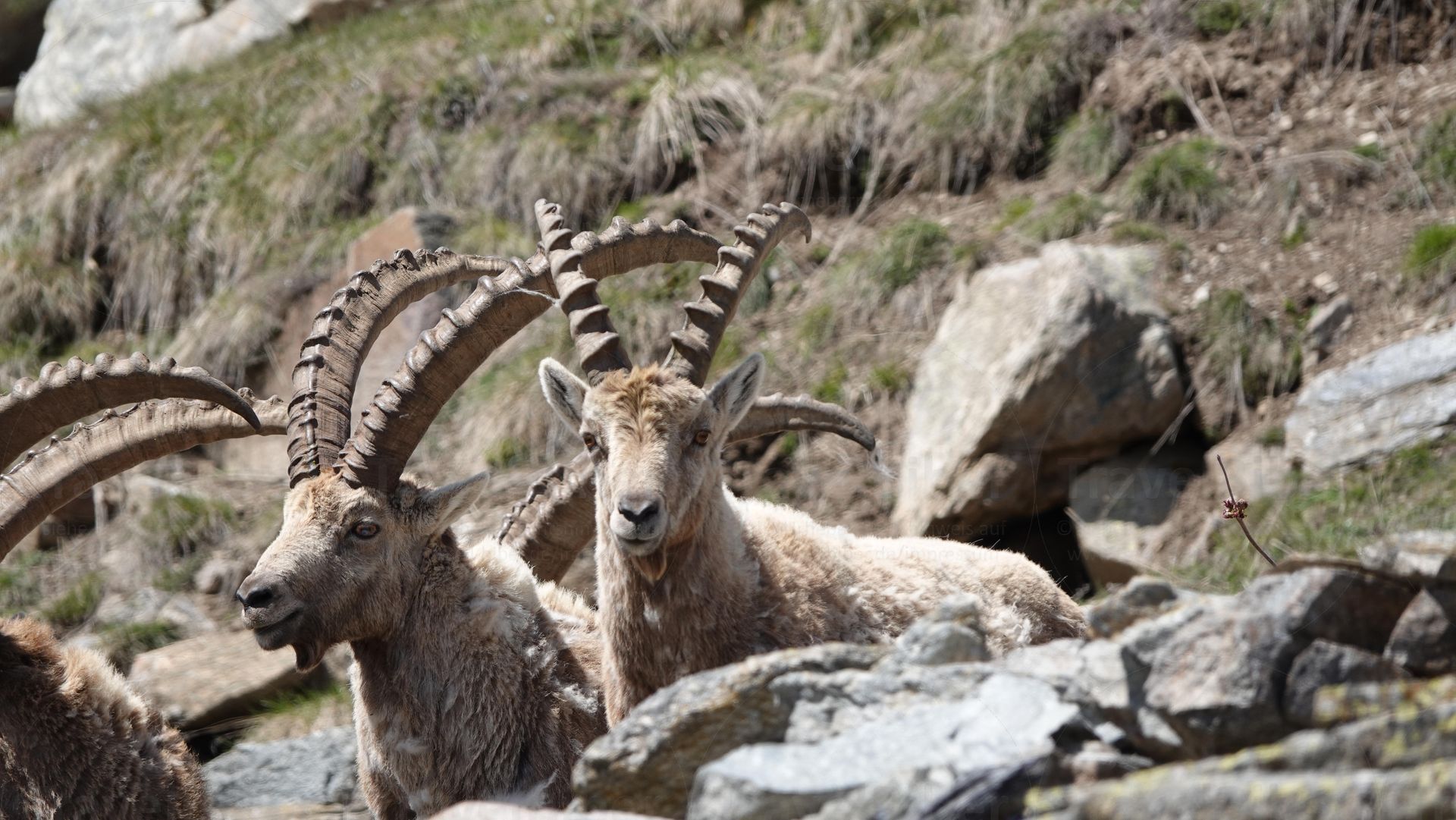 Hauptsächlich deswegen wollte ich diesen Park besuchen, und ... da sind sie tatsächlich, Steinböcke. In diesem Gebiet gab es die letzte Population des ansonsten im gesamten Alpengebiet ausgerotteten Alpensteinböcke. Der Bestand hat sich mittlerweile erholt.