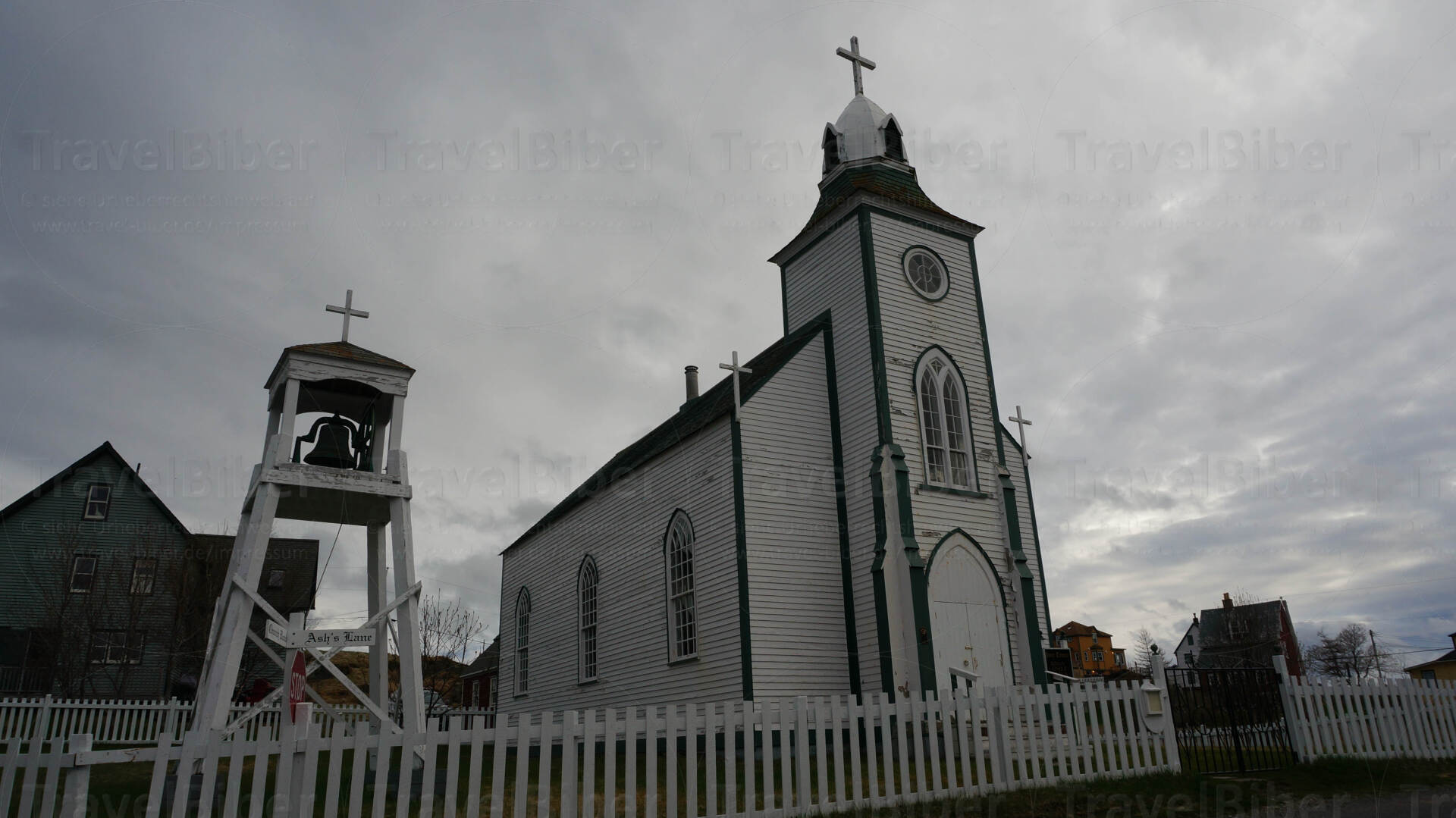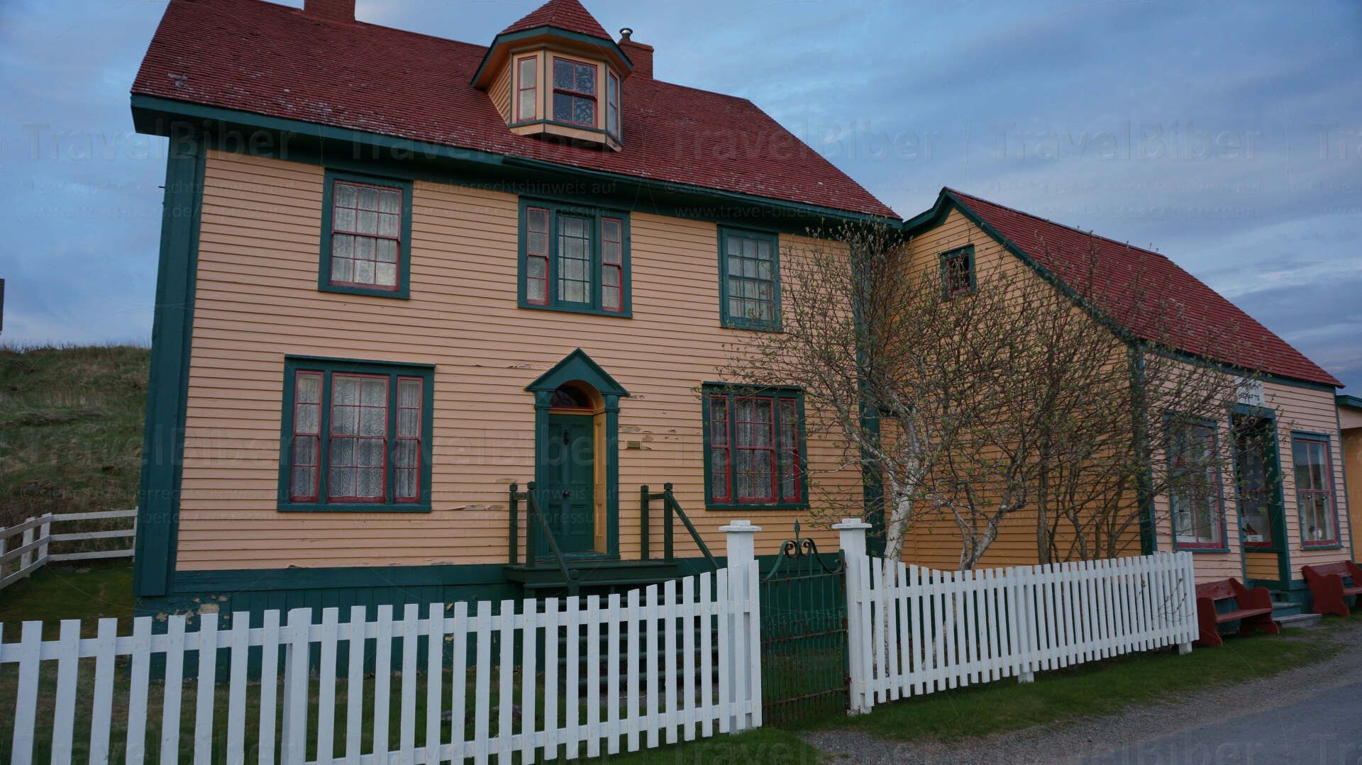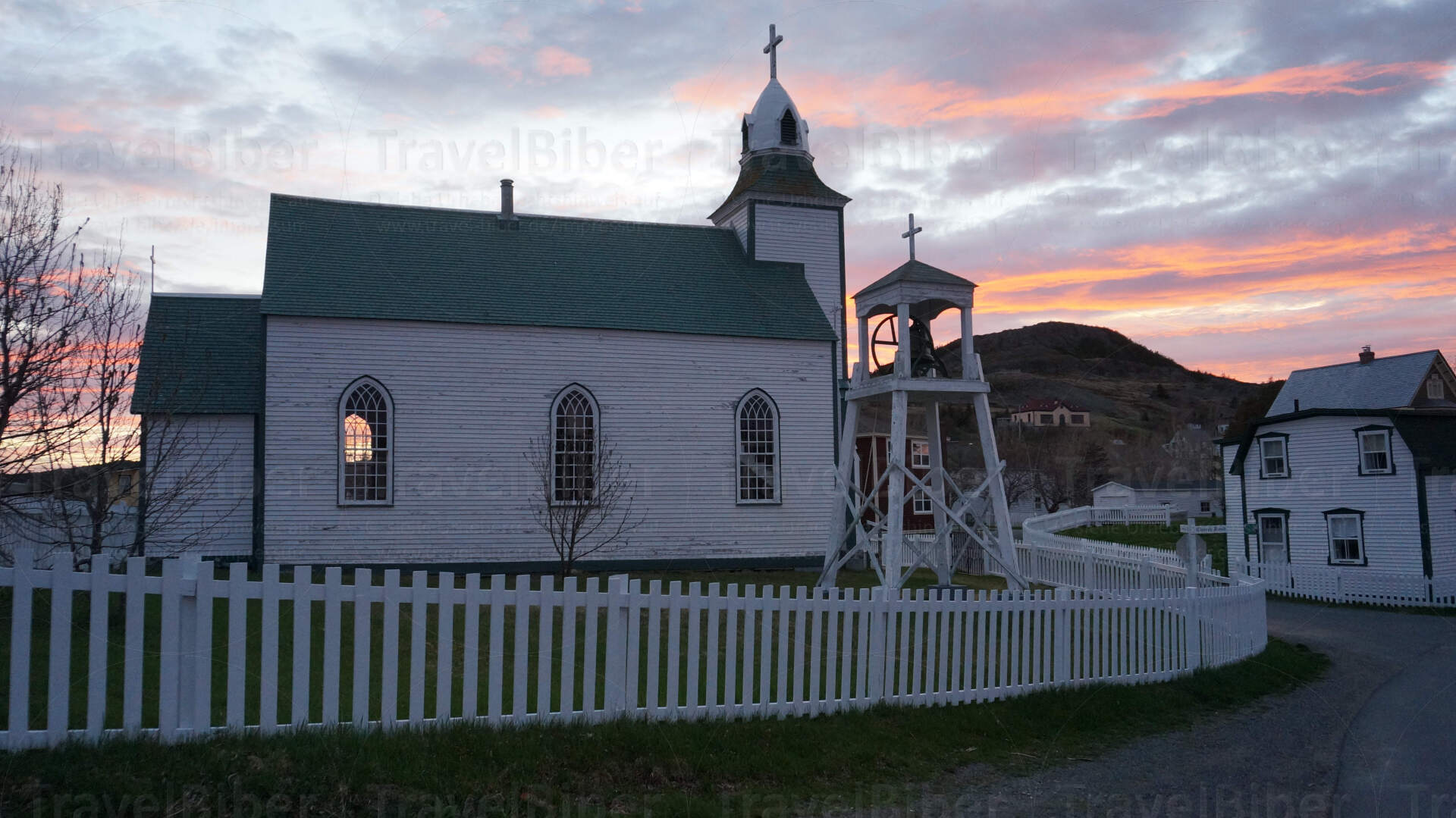 Ankunft am Abend bei Dämmerung in Trinity - hier sieht man die hübsche Kirche des Dorfes.
