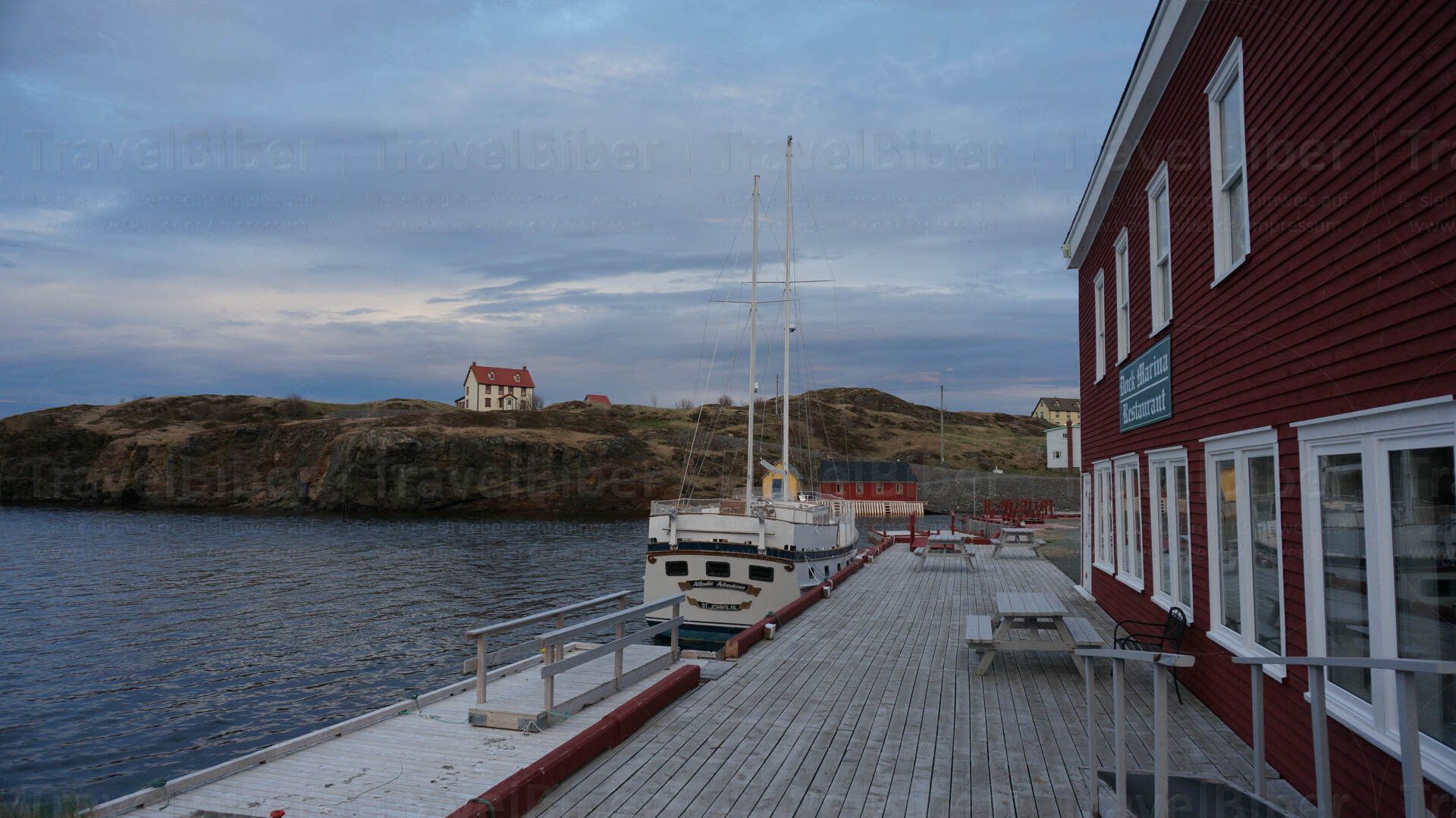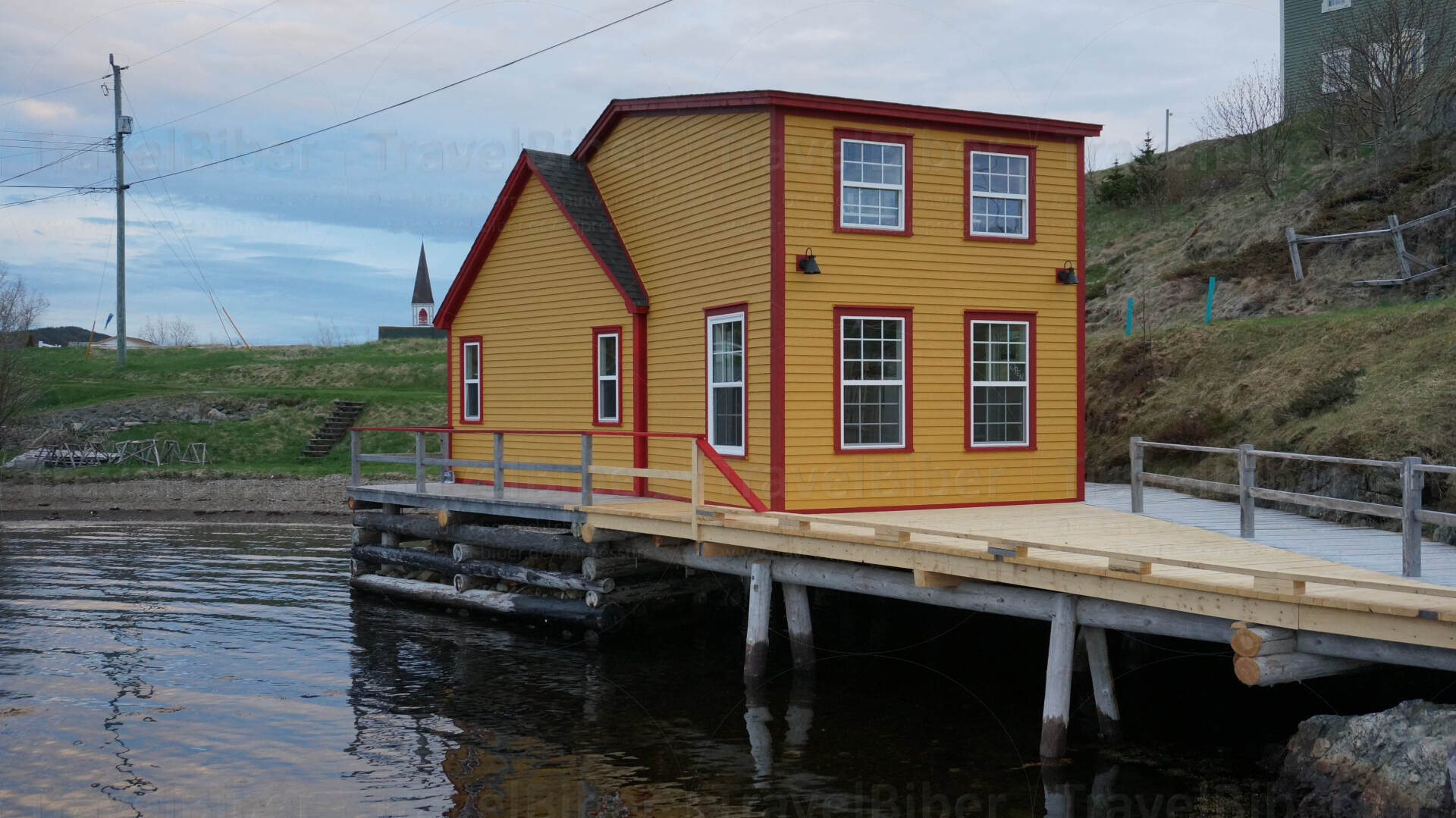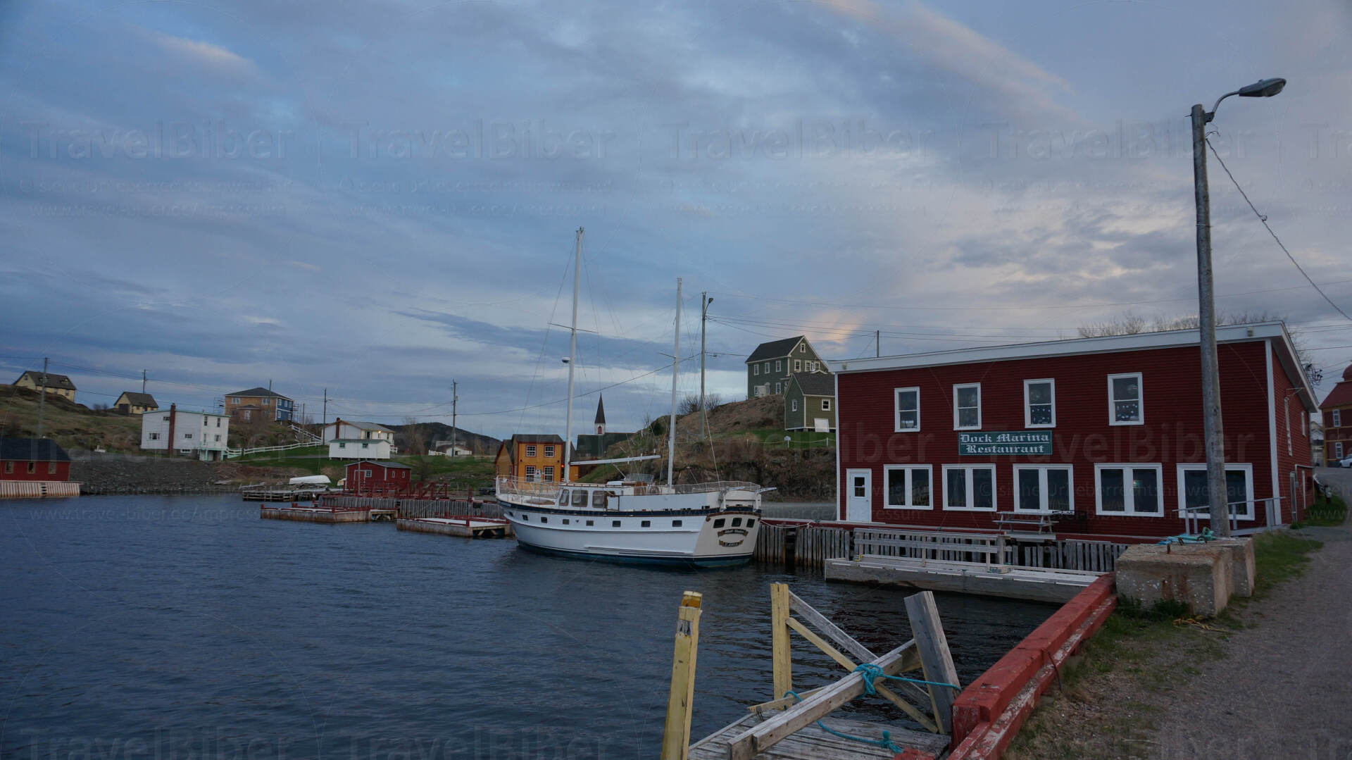 Ankunft am Abend bei Dämmerung in Trinity - hier sieht man die hübsche Kirche des Dorfes.