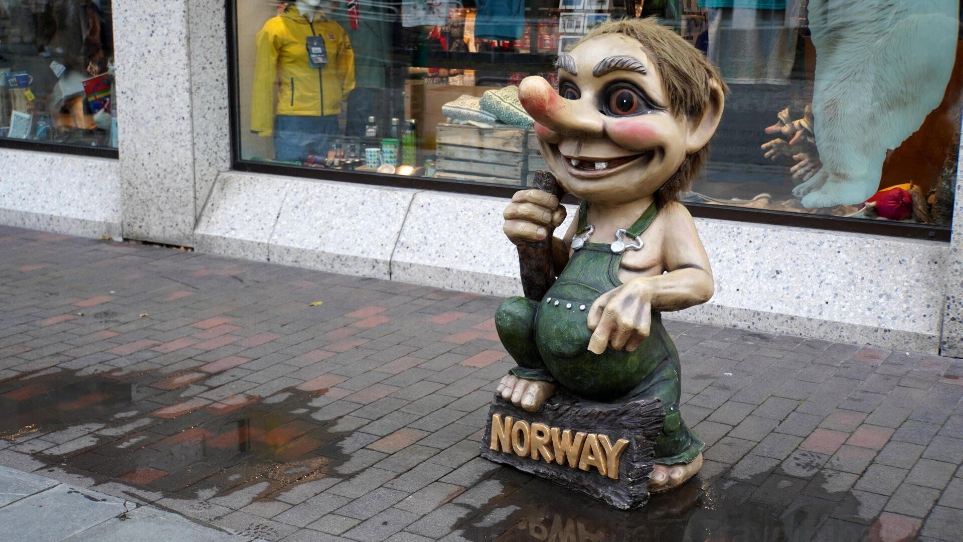 Troll vor einem Souvenirshop.