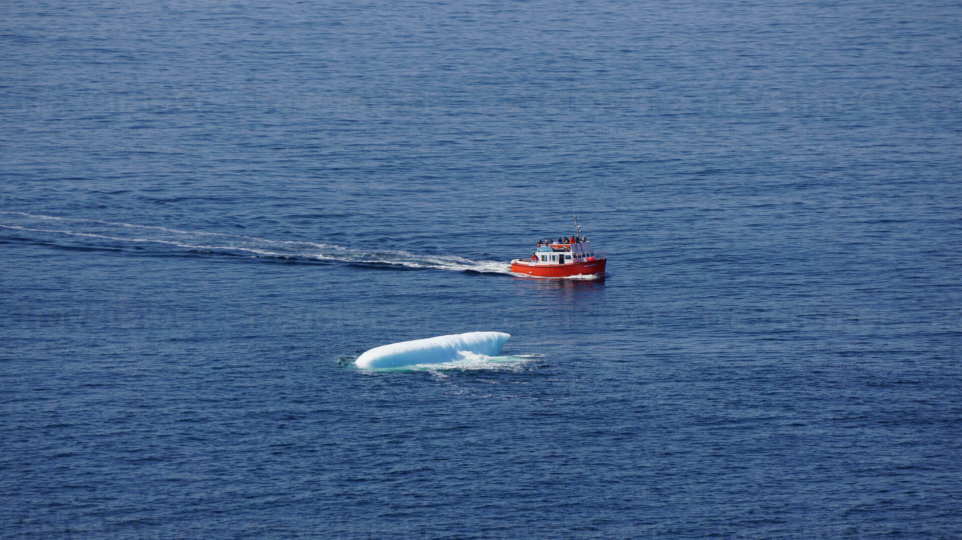 Blick auf Boot und Eisberg.