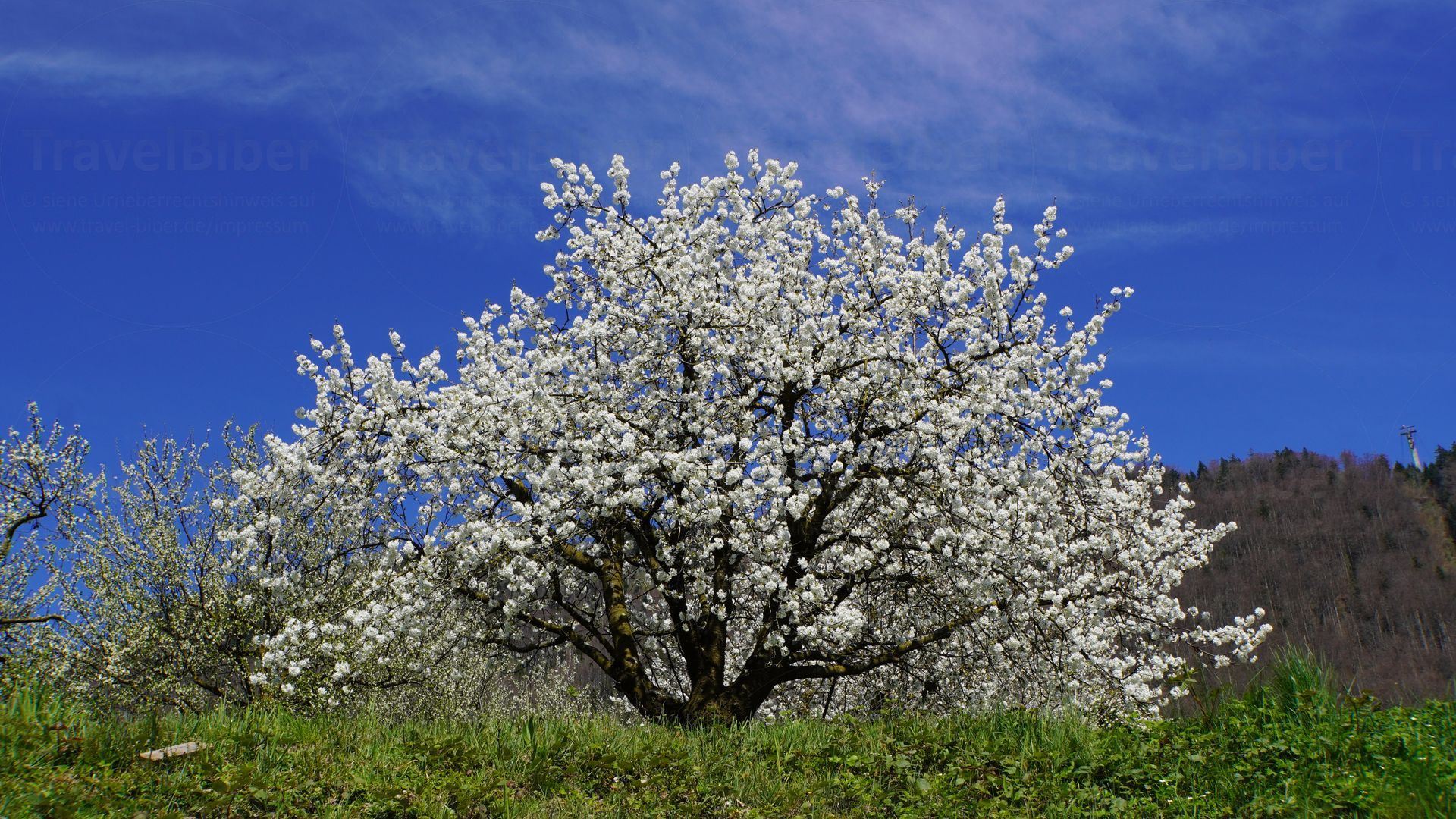 In Weggis angekommen, Frühlingsfeeling mit blühenden Bäumen und ...