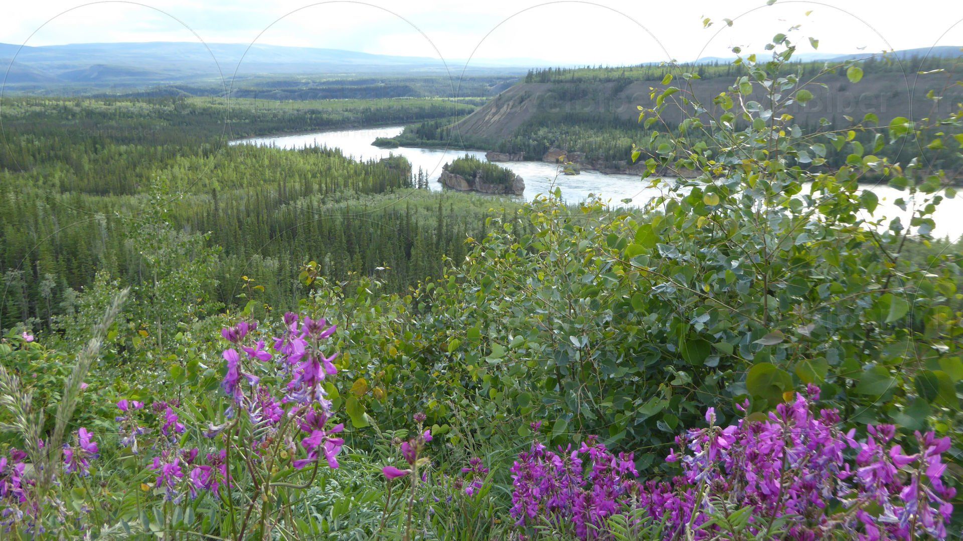 Weiterfahrt durch die Wälder Nordkanadas, vorbei an großen Flussläufen und Fireweed am Straßenrand - was für eine Landschaft!