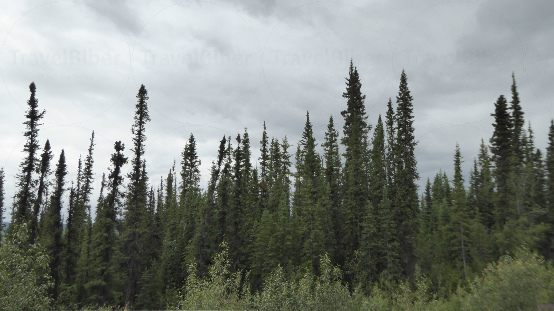 Weiter geht die Fahrt entlang schmaler Nadelbäume ...